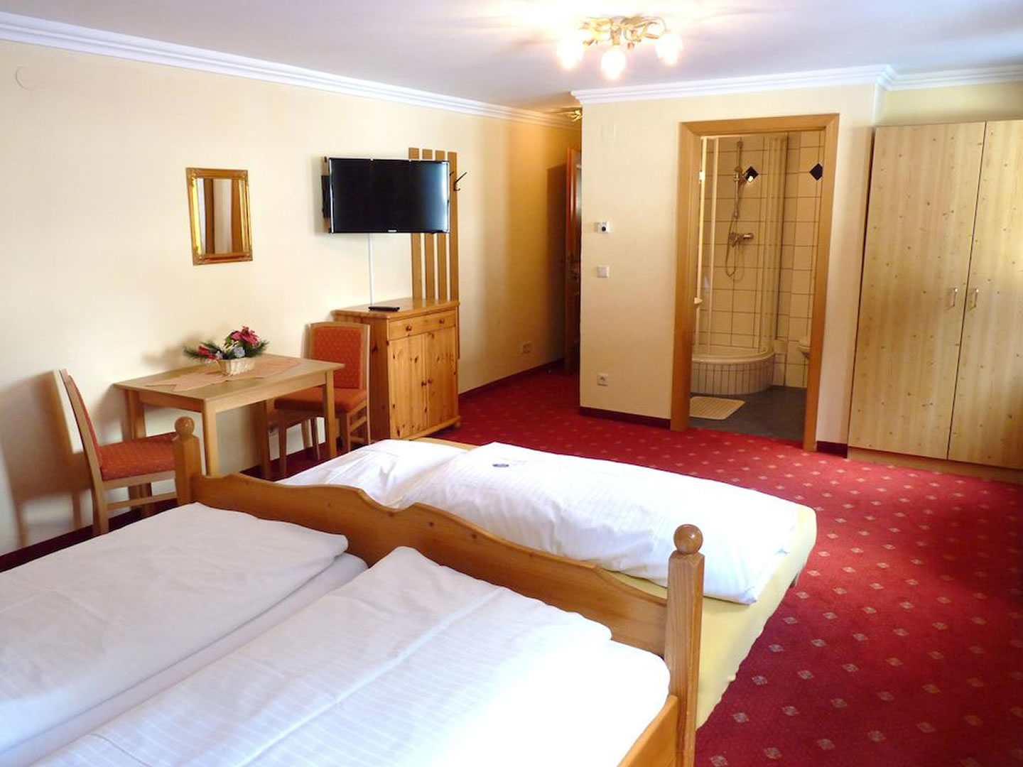 Unterkunft und Verpflegung- Übernachtung im Doppelzimmer, Familienzimmer, Appartement oder Penthouse. Alle Zimmertypen sind mit DU/WC, Kabel-TV, Radio und WLAN ausgestattet, einige Zimmertypen haben einen Balkon. Die neuen Zimmer vom Typ Lavendel sind sehr modern, mimimalistisch und stylisch mit edlen Materialien aus der Region eingerichtet.
