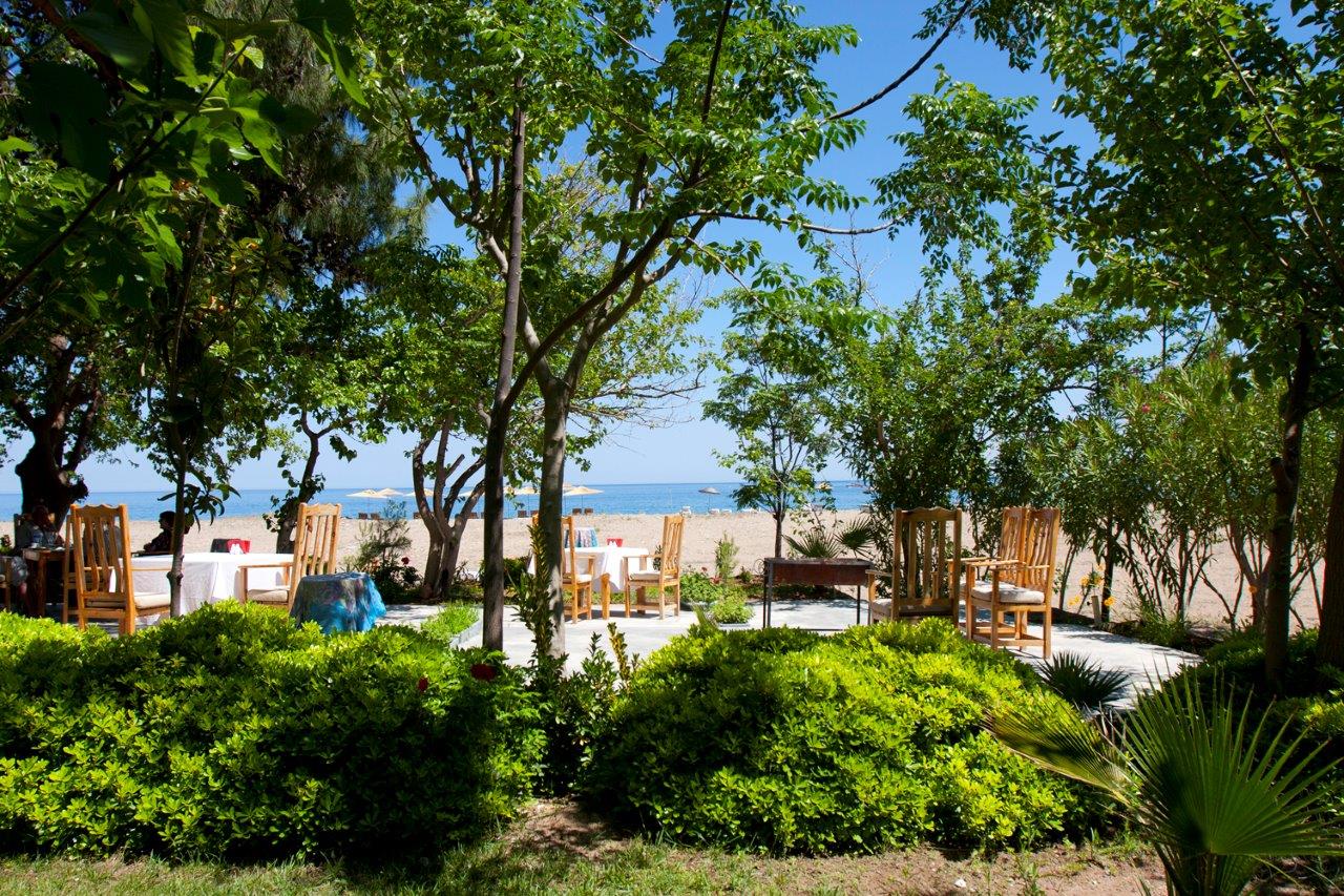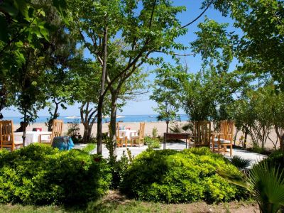 Im hauseigenen kleinen Restaurant der Anlage begrüßen Sie Gökhan und sein Team. Die Speisen werden frisch und liebevoll zubereitet und am Tisch serviert. Auch Vegetarier finden hier leckere Gerichte. Sie sitzen direkt am Sandstrand und blicken aufs offene Meer. Gökhan hat hier ein sehr lauschiges Plätzchen mit schattenspendenden Bäumen geschaffen, das man morgens, mittags und abends genießen kann. Auch eine kleine Bar mit typisch orientalischen Sitzecken zum Entspannen gibt es. Das Restaurant ist für Mittag- und Abendessen im Zeitraum 20.03. - 31.03.26 noch geschlossen.