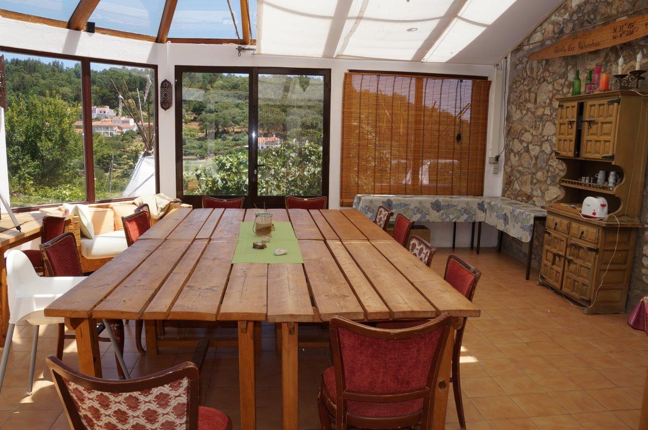 Das ehemals als Herrenhaus genutzte Haupthaus wurde detailgetreu im traditionellen Stil restauriert und zum Gästehaus umgestaltet. Im Haupthaus gibt es 5 Doppelzimmer mit jeweils eigener DU/WC und ein Doppelzimmer mit Gemeinschaftsdusche/WC. Im Nebengebäude befinden sich 3 Maisonettezimmer mit jeweils eigener DU/WC. Zwei kleine Häuschen für bis zu 4 Personen und ausgestattet mit Küchenzeile und DU/WC vervollständigt das Übernachtungsangebot.Genießen Sie in Ihrem Wanderurlaub in Portugal schon zum Frühstück die Aussicht auf die Berge. Das Frühstücksbuffet wird je nach Wetterlage vor oder im Wintergarten serviert. An vier Abenden pro Woche findet zudem ein gemeinsames Abendessen in der Quinta statt: Gemeinsam wird im 100 Jahre alten Steinofen leckere Pizza gebacken und ein typisch portugiesischer Grillabend (Churrasco) organisiert. An den anderen Tagen besteht im Ort Monchique die Möglichkeit, typisch portugiesisch zu speisen.