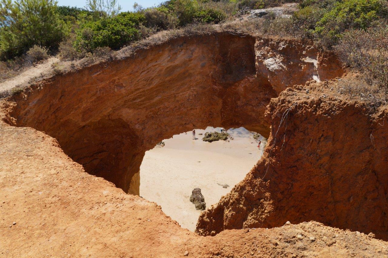 Südküste - vom Fischerort Ferragudo zu den Grotten der Algar Seco bei Carvoeiro: Unser Ausgangsort ist der Praia Grande in Ferragudo. Von hier aus wandern wir entlang der Küste in Richtung Carvoeiro und entdecken auf dem Weg fünf wunderschöne Strände, sowie die 2.000 Jahre alte römische Turmruine „Torre de Marinha“. Unzählige beeindruckende Felsformationen und Grotten lassen sich hier bestaunen, manche sagen sogar sie seien die Schönsten der Algarve. Vielseitig zeigt sich dieser Wanderweg mit Berg und Tal und auch leichten entspannenden Abschnitten. Gehzeit ca. 4 Std., ca. 13 km