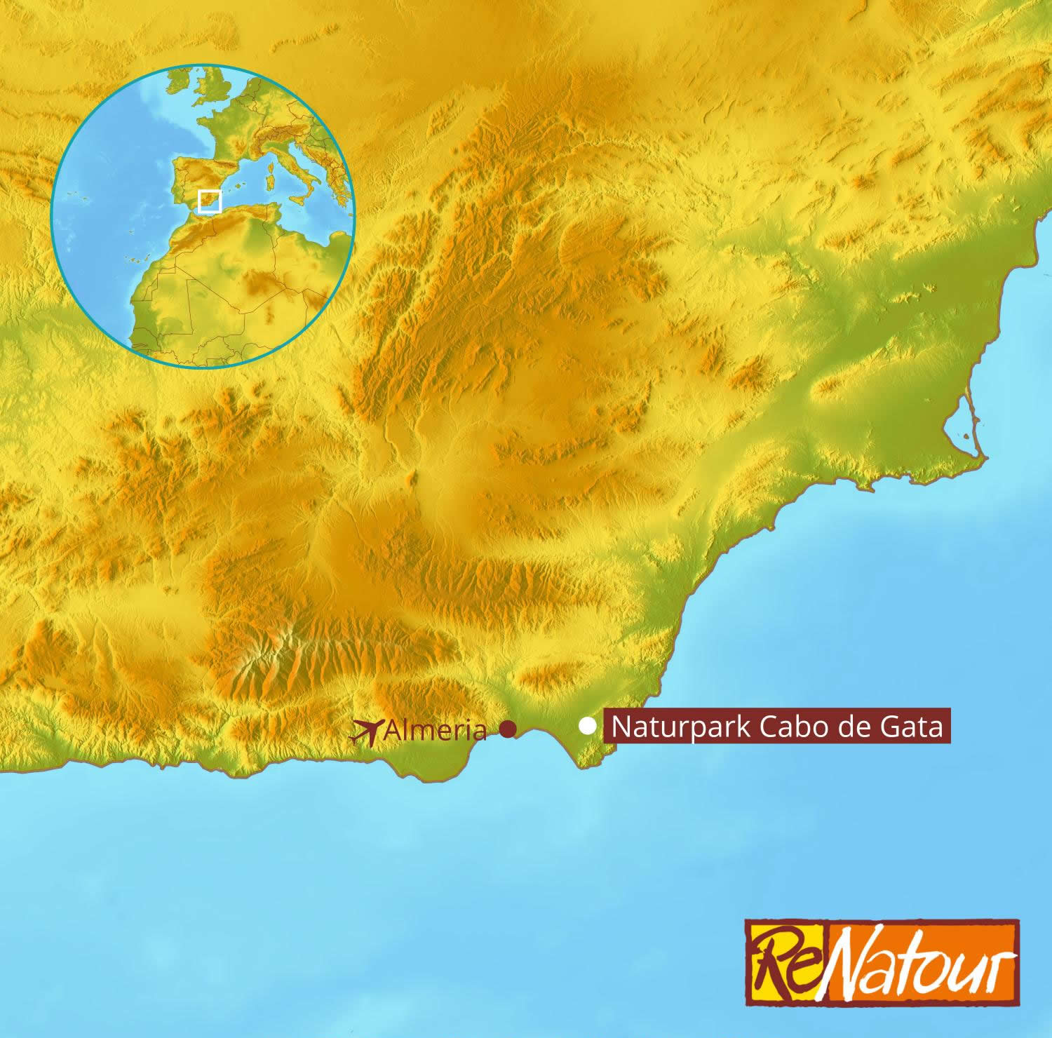 Heute ist die einzig echte Wüste Europas als Naturpark geschützt und hat sich als Urlaubsgebiet für den „sanften Tourismus“ etabliert. Hier sind sie noch zu finden - die einsamen, unverbauten Strände an der Mittelmeerküste Spaniens. Statt unschöner Betonburgen gibt es beschauliche kleine Landhotels und Anbieter für diverse Outdoor-Aktivitäten. Ideale Vorraussetzungen also für einen nachhaltigen Wanderurlaub in Andalusien.