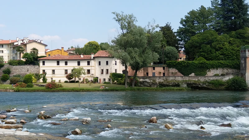 Anstieg zur Alta Via del Tabacco, ein fantastischer Höhenweg oberhalb des Brentatales. Über die Einsiedelei San Bovo erreichen Sie wieder den Talgrund und wandern nun entspannt entlang des grünen Flusses Brenta. Über die berühmte Brücke Ponte Vecchio schreiten Sie in den Etappenort Bassano del Grappa.