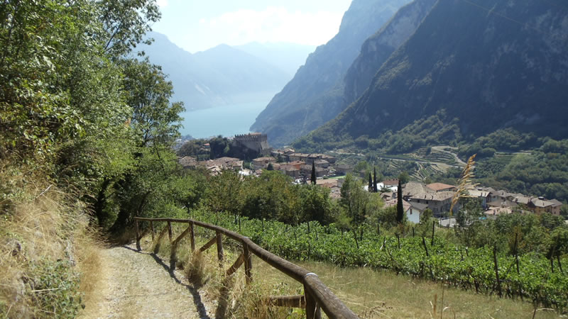 Kurzer Autotransfer nach Ceniga. In Ceniga starten Sie Ihre Wanderung durch die Weinreben des Sarcatales. Bald empfängt Sie ein riesiges Felssturzgebiet, das an eine Wüste aus Stein erinnert. Mit Blick zum Lago di Cavedine geht es vorbei an Obst- und Gemüsefeldern in den kleinen Ort Pietramurata, umgeben von den höchsten Felswänden der Gardaseeberge im Flusstal der Sarca.